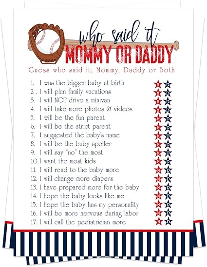 Daddy Baby Shower Games / Amazon Com Baby Shower Game Guess Who Mommy Or Daddy Handmade / Have guests use a tennis ball or other small ball to knock them down.. Man has to talk on the phone,while he changes the babys diaper, holds the baby and pins clothes on a clothes line in as little time as possible. Your baby shower could have the tastiest snacks and cute cakes on the block, but to really impress your guests, you'll want to have games that are fun for everyone, women and men alike. It's a fun one and most people won't mind the quick break even if they aren't game people. Free printable classic and new baby shower games to make your baby shower party fun and memorable for all of your party guests. I think we can all agree that it's fun to play games when attending baby showers.