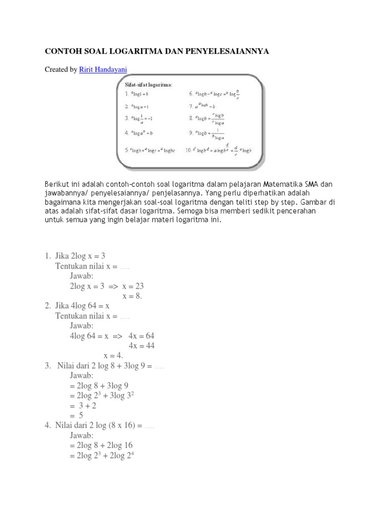 Artikel Contoh Soal Logaritma Dan Jawabannya / Contoh Soal Logaritma Natural Dan Jawabannya | Tips ... - Sifat, operasi hitung dan penerapan.. Soal cerita yang berkaitan dengan logaritma dan penyelesaiannya. Sifat, operasi hitung dan penerapan. Contoh soal eksponen kelas 10 dan logaritma berikut pembahasan dan jawaban. Sebab di dalamnya memuat bentuk bentuk standar soal psikotes yang dipakai sebagai standar ujian psikotes di pemerintahan, bumn. Artikel ini membahas tentang definisi, bentuk umum, dan sifat logaritma.